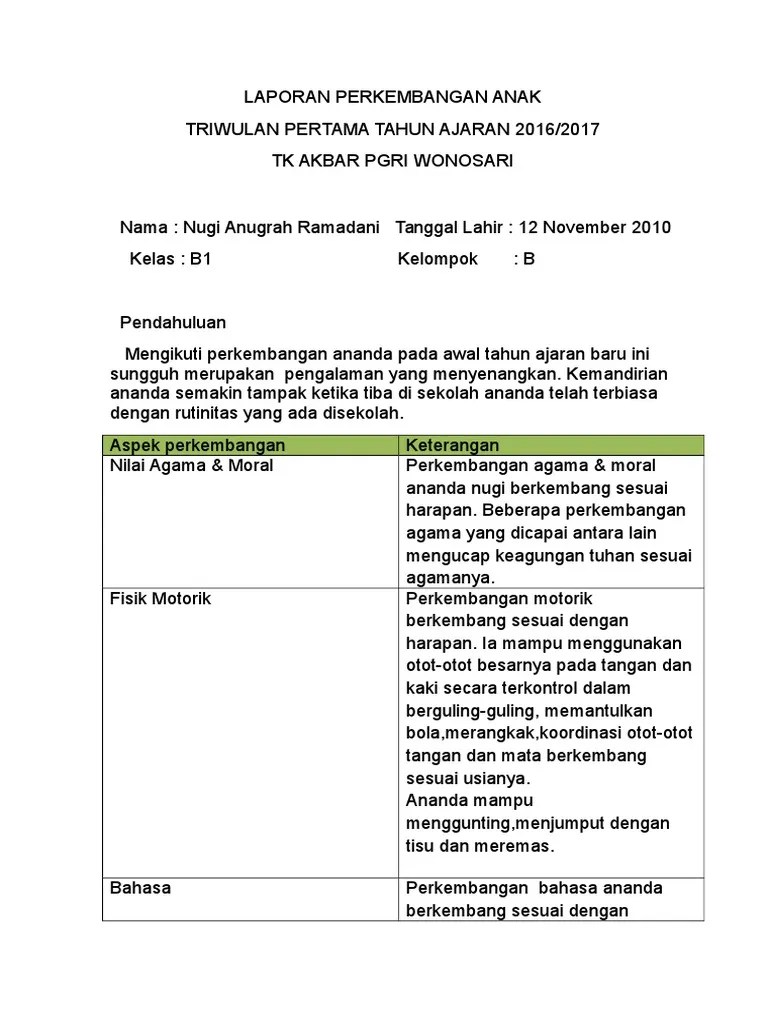 Contoh Penilaian Perkembangan Anak Paud : Contoh Laporan Pencapaian Perkembangan Anak Lppa Paud Blog Paperplane - Kurikulum 2013 pendidikan anak usia dini (paud) mencakup pengembangan pada aspek.